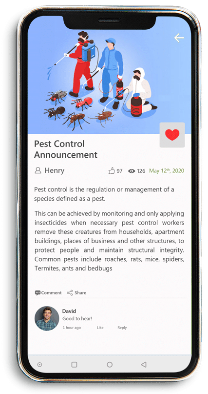 eFACiLiTY® Smart Pest Control App enables conducting inspections and updating job progress easy for your pest control team, therefore optimizing their field productivity.